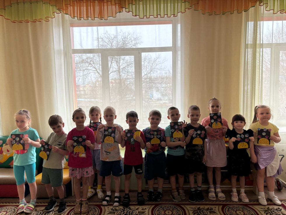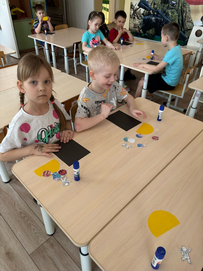 В рамках мероприятий, посвященных Дню космонавтики, воспитанники первой старшей группы выполнили аппликацию «Космос»