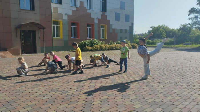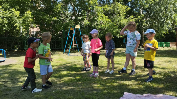 На прогулке с воспитанники подготовительной группы играли в интересную игру "Море волнуется раз"