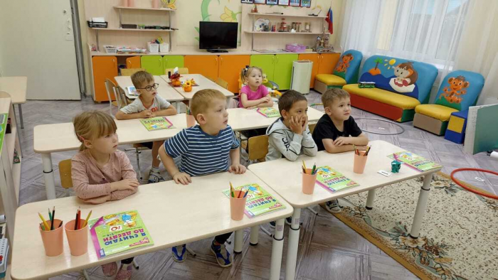 Затем всех пригласили на тематическое занятие "Что я знаю о школе". Дети узнали, что такое уроки, переменки, портфели и учебники. Воспитатель рассказала ребятам о том, как правильно вести себя в школе, почему важно слушать учителя и уважать одноклассников.